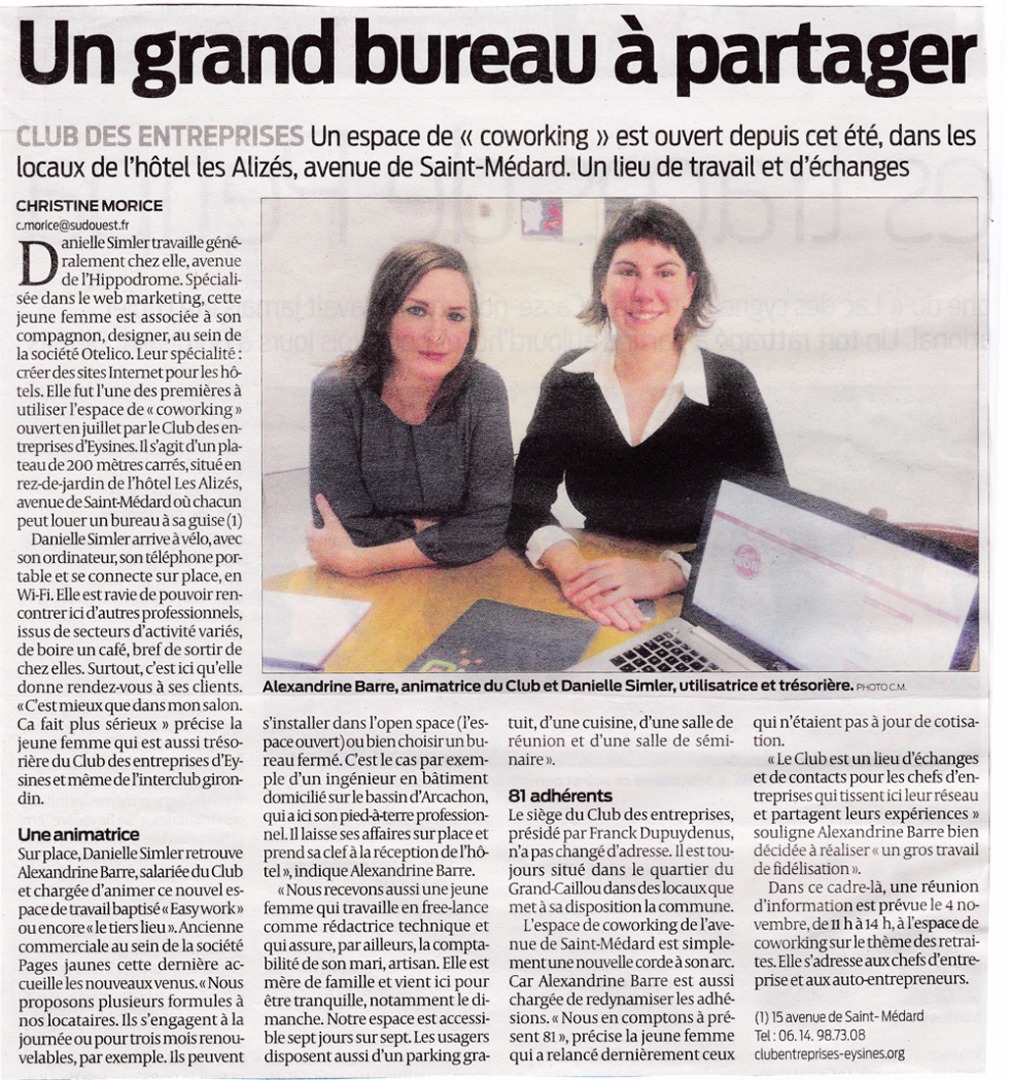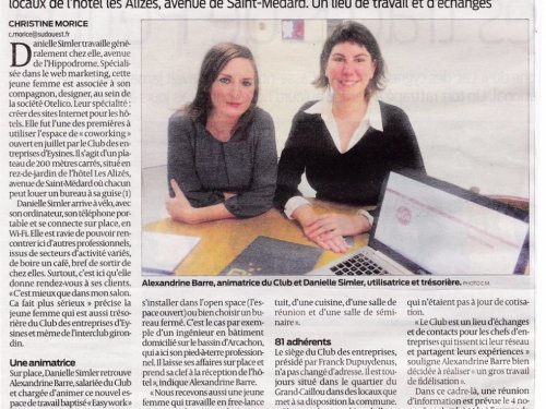 Article de presse sur l'espace de « coworking » à Eysines, par Christine Morice